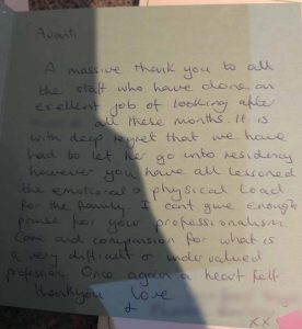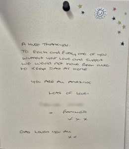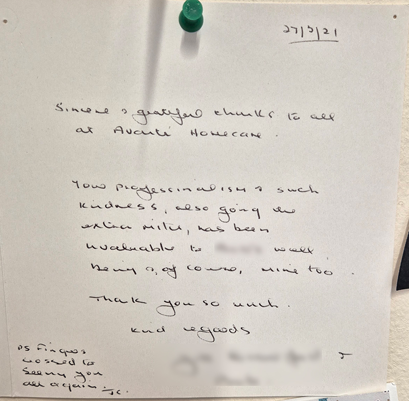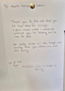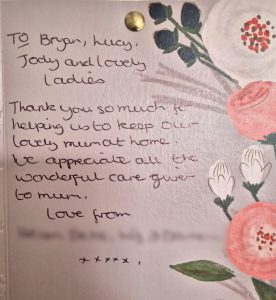 We know choosing a care company isn’t an easy decision and it’s helpful to see what other people’s experiences have been. Here are some lovely cards and letters we have received, alongside feedback via our care app and online. Occasionally we also get reviews on Google and Homecare.co.uk too.
