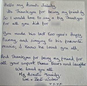 Lucy (Avanti Manager) took the time to sit with me and Mr B, and we went through everything—my medication, my schedule, and even some paperwork we needed help with. They’ve been so thorough and caring, making sure everything is in order for me.