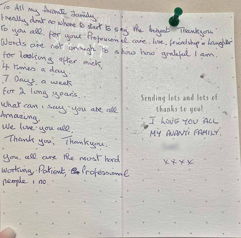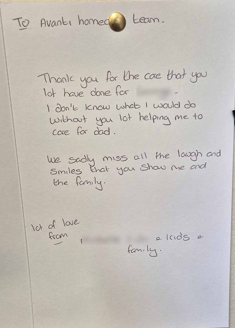We know what you are going through, we understand how important it is to feel safe and to trust the care you receive. When we started Avanti, we aimed to build a team we’d trust with our own family, and we were put to the test when one of our loved ones needed support. Our award-winning team made a real difference to them and to us. With years of experience, we’re committed to offering that same peace of mind to you. You’re not alone – you can trust us to help.
